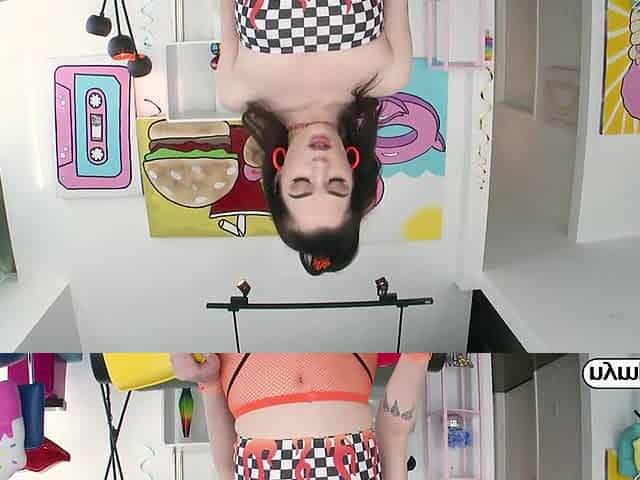 Anastasia, the horny brunette nympho, brings herself to orgasm using her fingers!