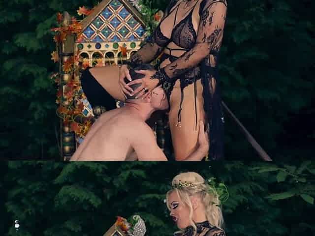 Nymphomaniac blonde damsel in high heels pleasures Ricky outdoors