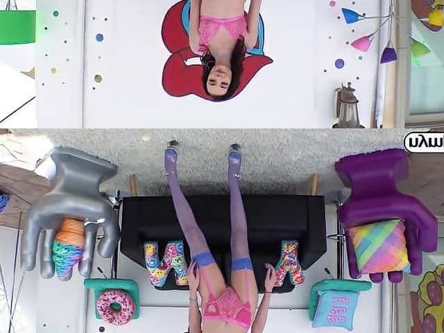 Raven haired nympho Sadie Pop likes to fuck with her panties on