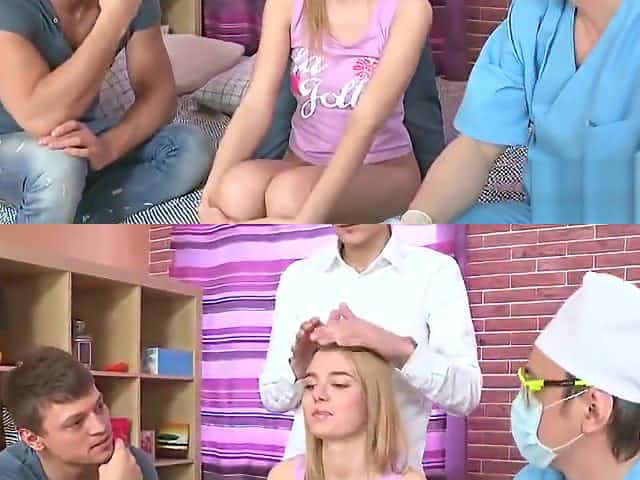 Doctor assists with hymen examination and virginity loss of virgin nympho