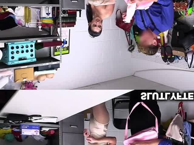 Large booty Latin babe bows over for shlong in hose after getting busted for stealing