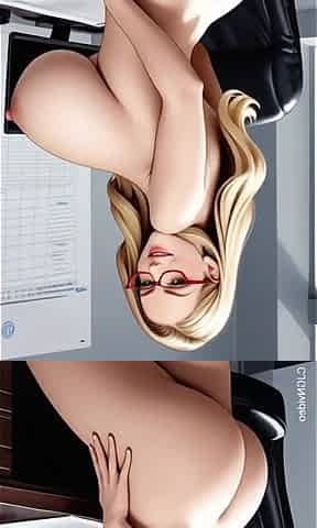 A blond office assistant and her boss are checking his petite wang