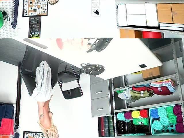 Coed thief with big tits sucking dick at the office