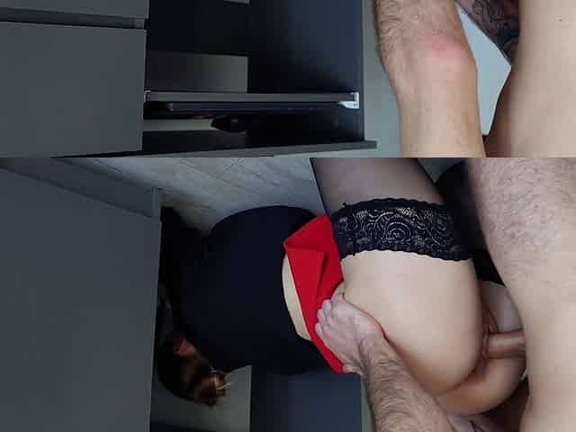 The Boss Fucks His Tiny Secretary On The Office Table And They Films It On Camera