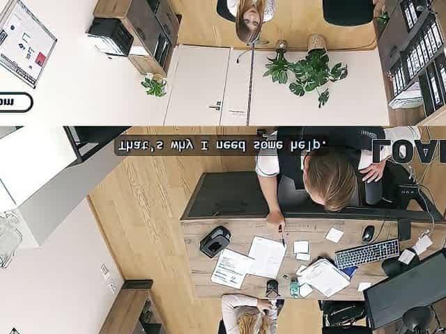 LOAN4K. Blonde Maya with big tits is fucking a bank worker on the office chair while his colleague is watching