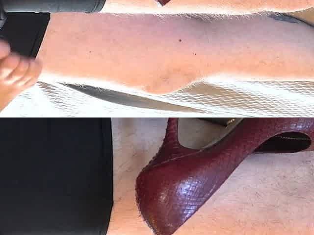 Sexy Secretary with Perfect Legs N Feet Giving the Boss a Footjob - Ends with Lots of Cum in Her Red High Heels - Business-bitch