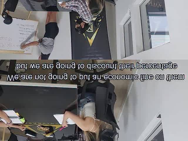 LOAN4K. Elis Dark asks for credit and spreads her legs in the office