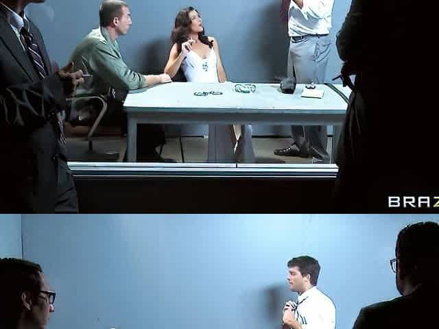 Sexy brunette assistant Alexis Silver loves it when the officers bring a slut back to fuck in the office