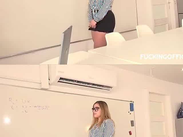 CUTE EMMA FUCKS HER BOSS IN THE OFFICE AND GETS HUGE CUMSHOT