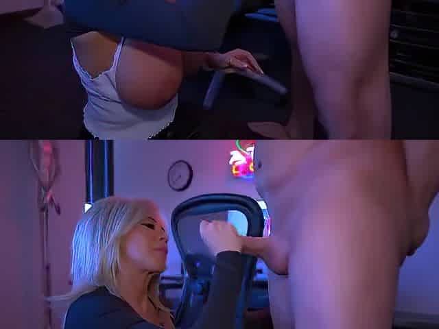 Big boob MILF blows cock nicely in the office