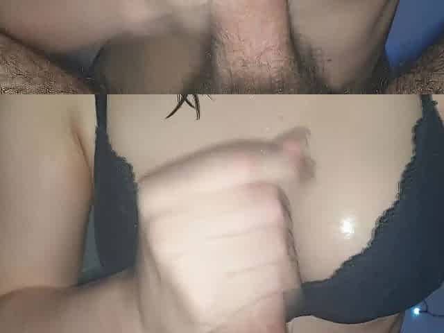 Quick Tugjob And Oral-job In My Brassiere To Make Him Cum!