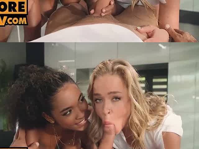 Busty blond Kyra Hot decorates her figure in oil before getting drilled by beefy maximo's hard dick - brazzers