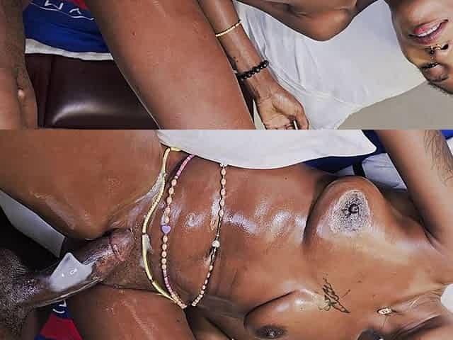 A large, oiled butt takes a priceless, hard ebony wang...