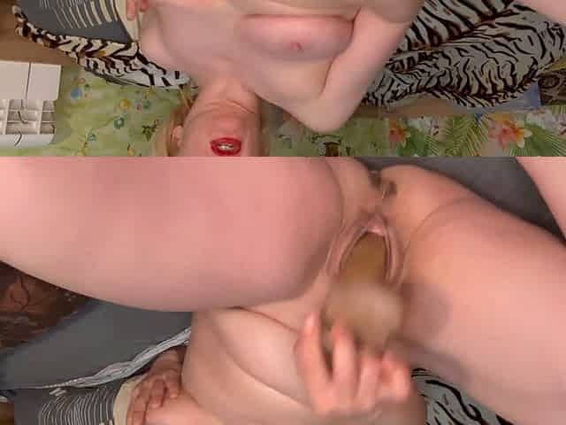 Fingers in the anal and in the pussy. Milf with a delicious butt in oil.