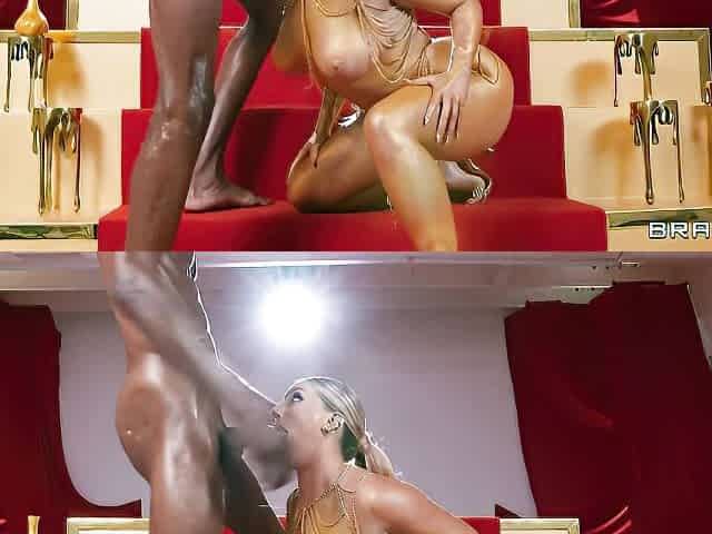 Rough interracial dick-riding with a long-legged blonde Kayley Gunner