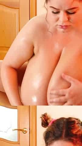 White angel with a overweight booty getting oiled up exposed