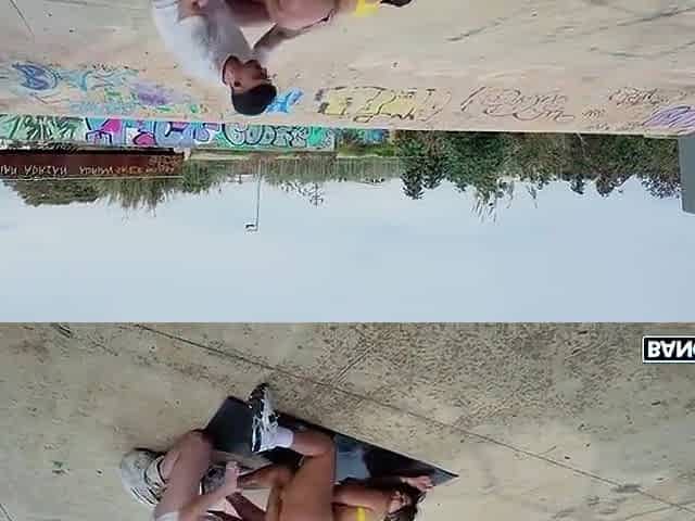 Nympho booty oiled babe outdoor fucked in her tight muff