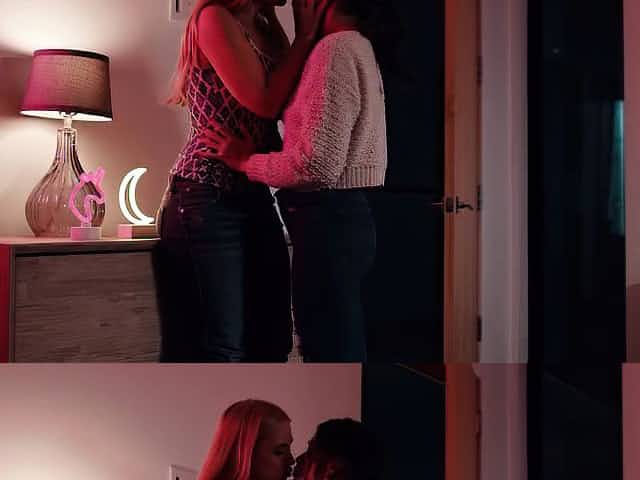 Taylor Vixxen and her gal Khloe Kingsley giving a kiss and getting caught up in the heat