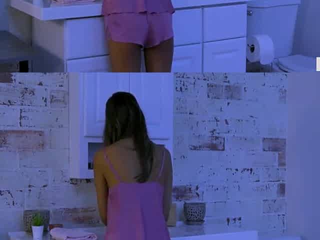 Old Step mom and teen 18+ is playing with pussy in the bathroom