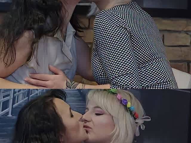 Hawt Golden-Haired Shares Vagina To Hot Brunette Hair