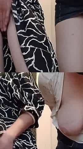 Petite stepdaughter fingering her big tits lesbian stepmom