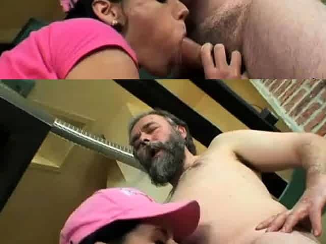 Hot brunette latina girl gives an old grandpa a long deep blowjob