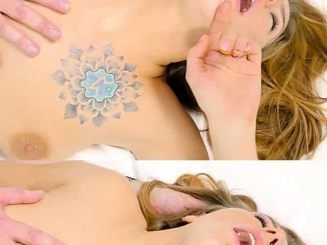 Blonde Chick Enjoys Hot Threesome with Older Man Fucking Her Young Sweet Pussy