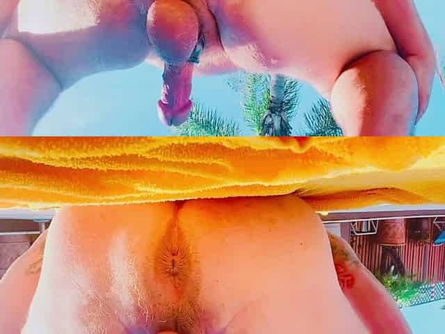 Old gay with a massive dick jercks off on balkon