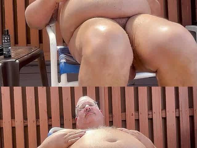 Fat man in the front yard 1, swimming trunks