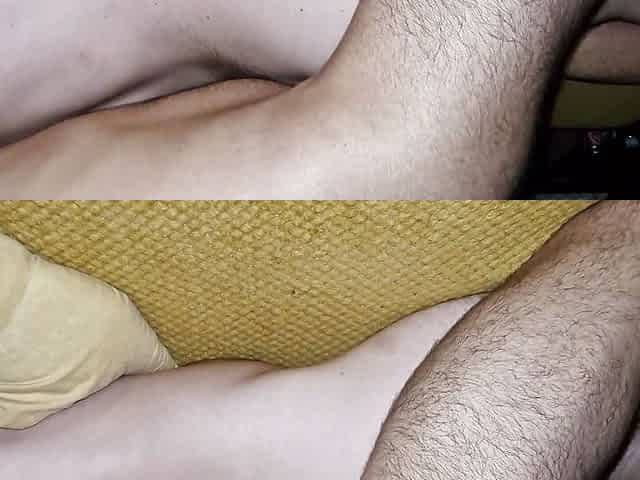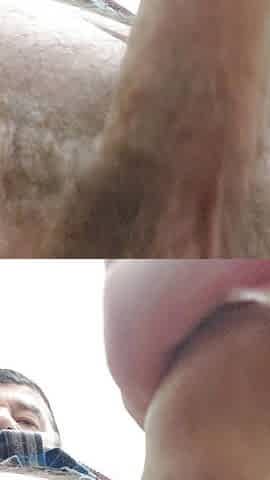 Hombre maduro velludo se toca las nalgas y sacude el pene