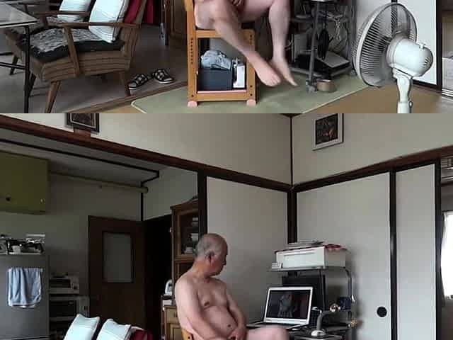 Japanese old man masturbation erect penis semen flows