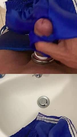 Wank and come in Adidas-Glanzshorts with cockring .