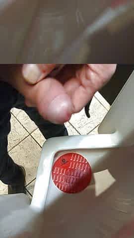 Jerking at a public urinal