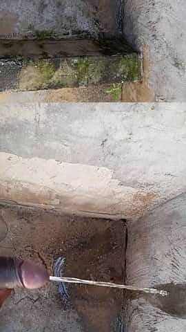 Precum small dick piss in the garden