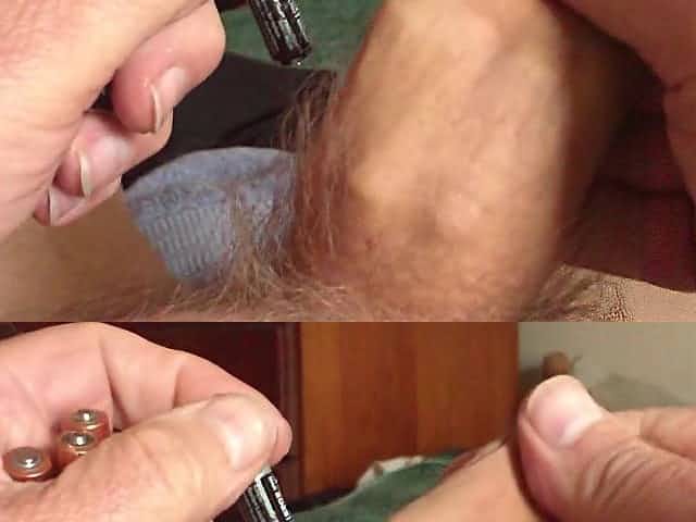 A spoon and a ball and 10 batteries in foreskin - 15 minutes