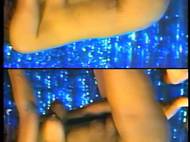 Lesbians share a double ended dildo on top of a strip club bar