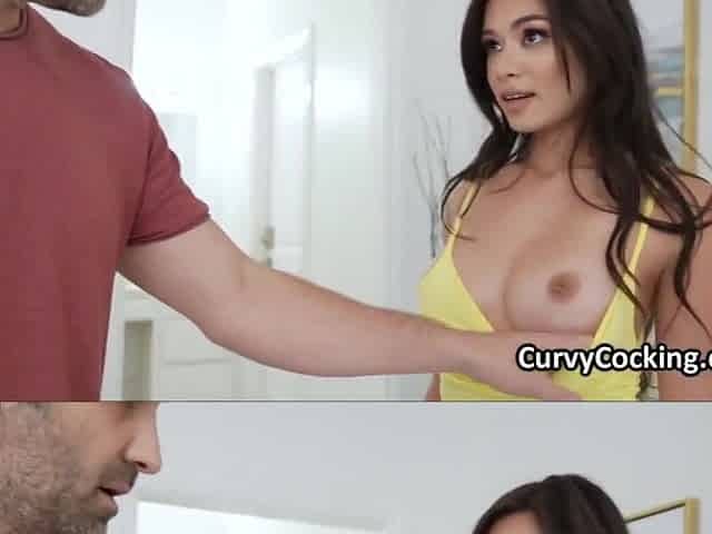 Stepdaughter has sex with stepdad - stepdad rubs his dick on top of his Latin chick stepdaughter's twat