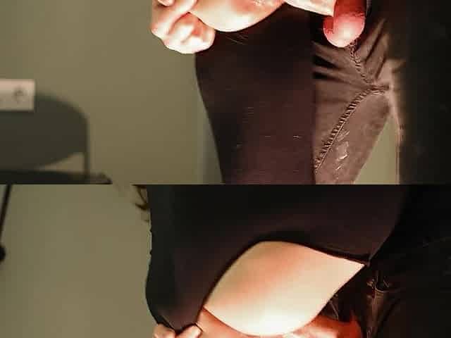 Horny stepsister teases me while sitting on top, wearing stunning lingerie, and gives an intense hand job resulting in a huge lo