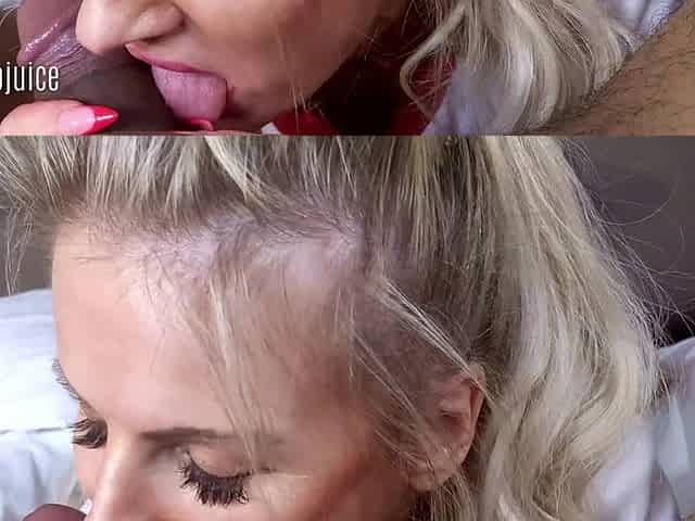 Platinum-blonde Jade Amber gets filled while showing off her skills with a hot blow job
