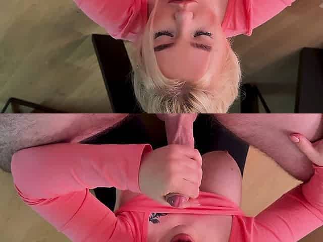 Blonde Small Tits Blowjob Deepthroat Creampie Cum Eat