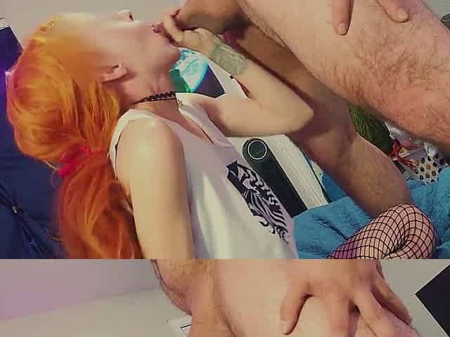 Petite redhead gives an incredible deep throat and grinds while getting creampied