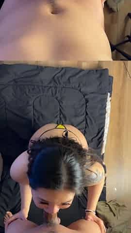 Best close-up blowjob from step-sister Mirallise with plenty of cum in her mouth