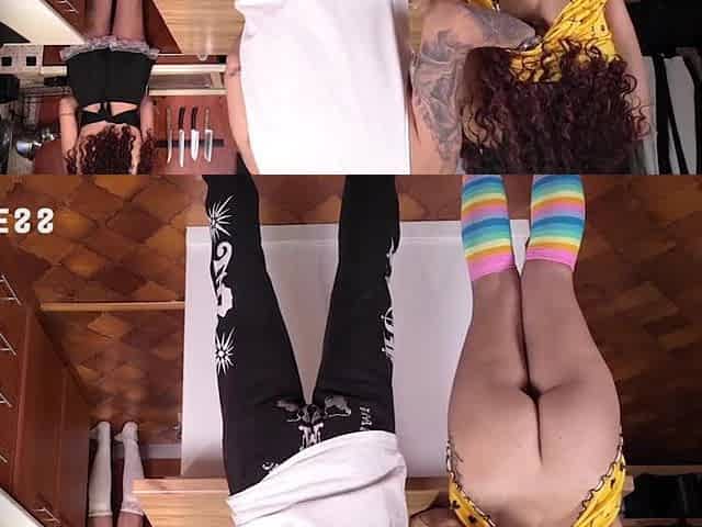Maid Can't resist Masturbation whilst Dad is screwing me in the kitchen..!
