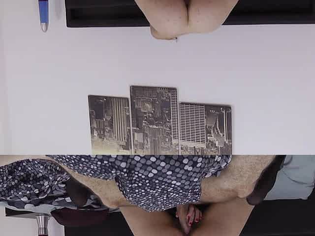 He can't handle it and his cum spills out of her pussy in the massage room session