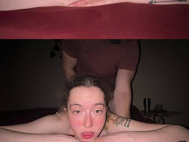 Bitch sucks 2 giant weenies then gets a hard screw to jizz flow