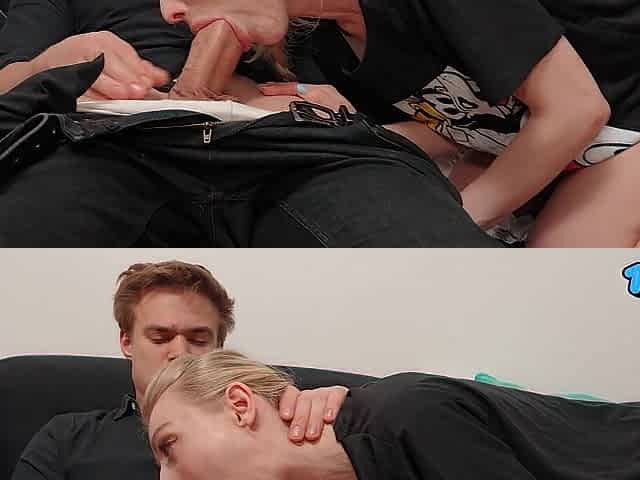 Neighbor Loves a Long and Deep Blowjob While Watching a Cumshot