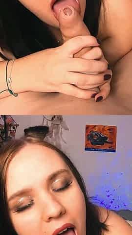 Slim cutie Lola Spice has a mind-blowing orgasm surrounded by a flood of cum with a big salami