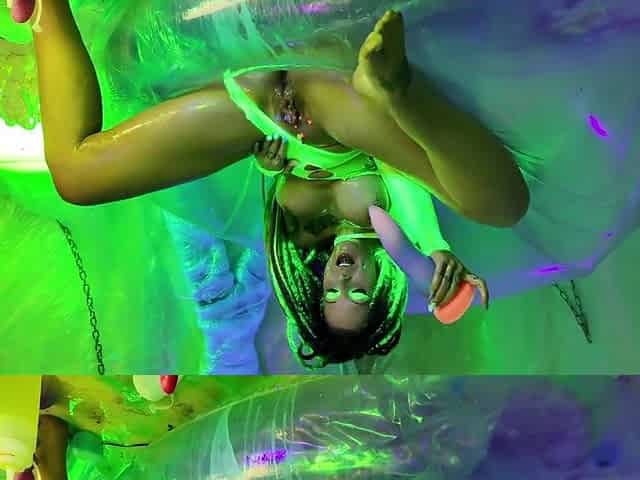 doctor with her bawdy cunt plays with the toy booty and squirts