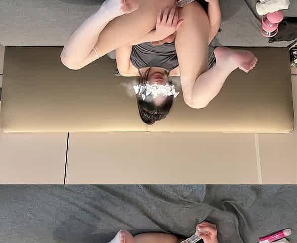 Curvy Fitness Woman Stretches and Masturbates in White Socks.