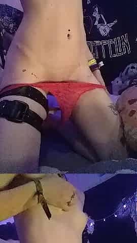 Hadley Karter is in a set of red and ebony lacey underware in advance of this babe masturbates.